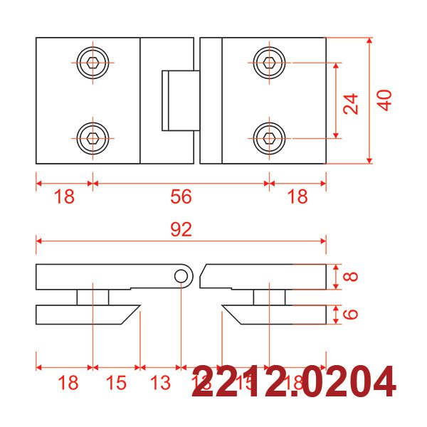 Kiểu bản lề: Liên kết kính – kính góc 180°