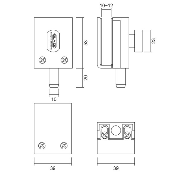 Chốt cửa kính PL-810 nhãn hiệu Glaze, không cần khoan khoét kính, dễ dàng lắp đặt cho cửa mở quay