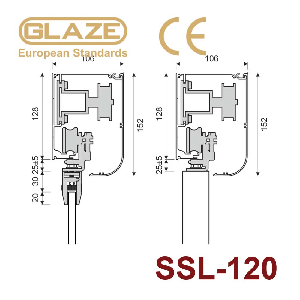 • Tải trọng cánh cửa < 120kg x 2 cánh