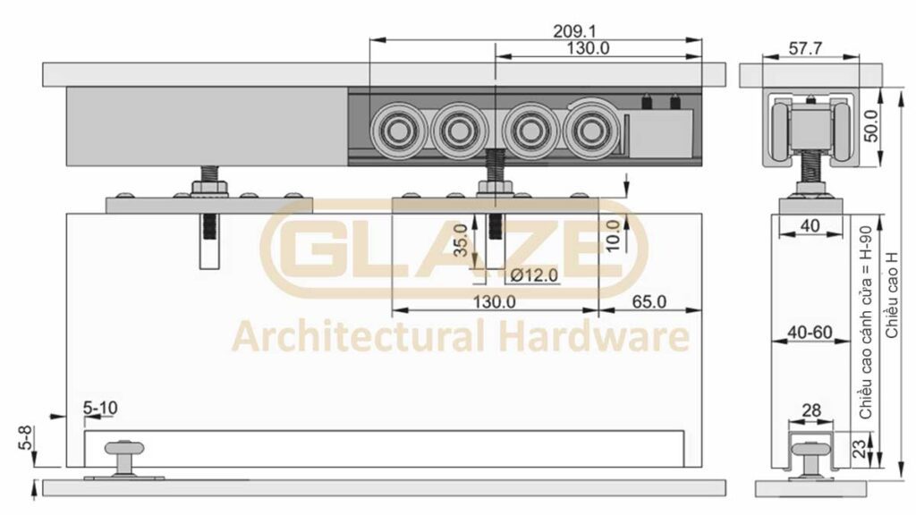 - Chuyên dùng cho cánh cửa trượt trọng lượng lớn.