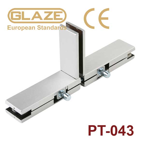Kẹp cửa kính PT-043 nhãn hiệu Glaze, bề mặt hoàn thiện inox 304 bóng, chuyên dụng cho cửa kính cường lực bản lề sàn.