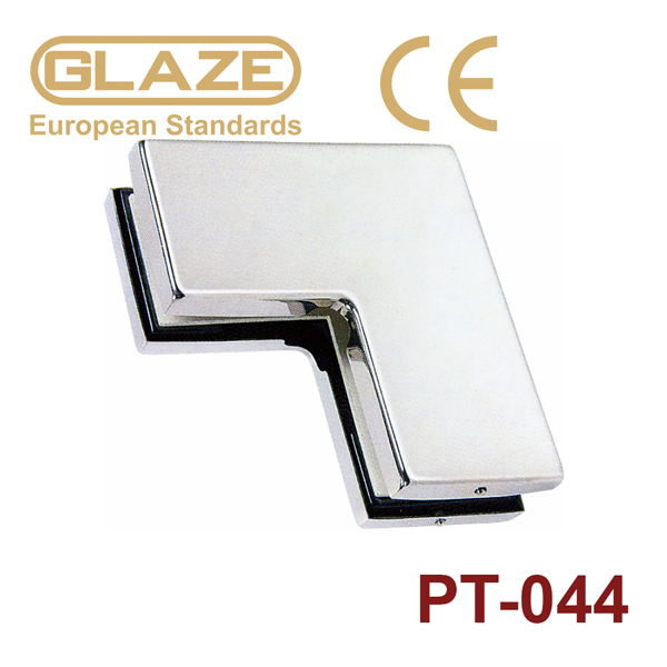 Kẹp cửa kính PT-044 nhãn hiệu Glaze, bề mặt hoàn thiện inox 304 bóng, chuyên dụng cho cửa kính cường lực bản lề sàn.