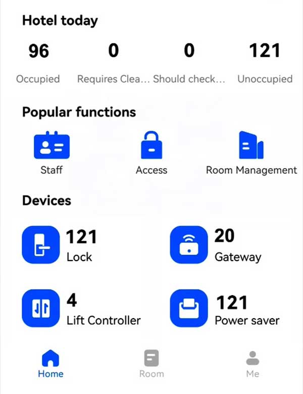 - Quản lý đa thiết bị: khóa thông minh, phát hành thẻ, điều khiển thang máy, công tắc nguồn, thẻ phòng, cổng ra vào.