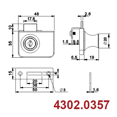Khóa tủ kính đôi được sản xuất bằng hợp kim mạ Chrome, dùng cho kính dày từ 4~8mm, phù hợp sử dụng cho tủ kính trưng bày, tủ rượu…