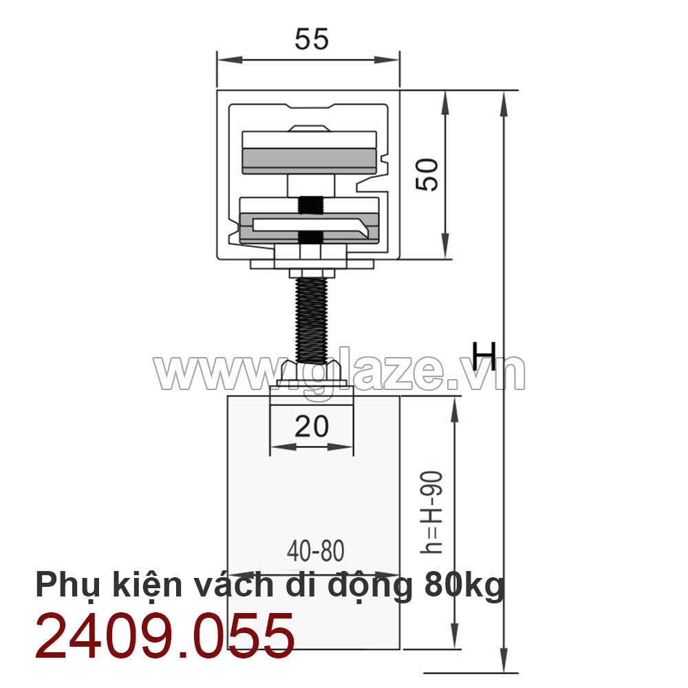 - Sử dụng với ray trượt nhôm đúc 55x50mm