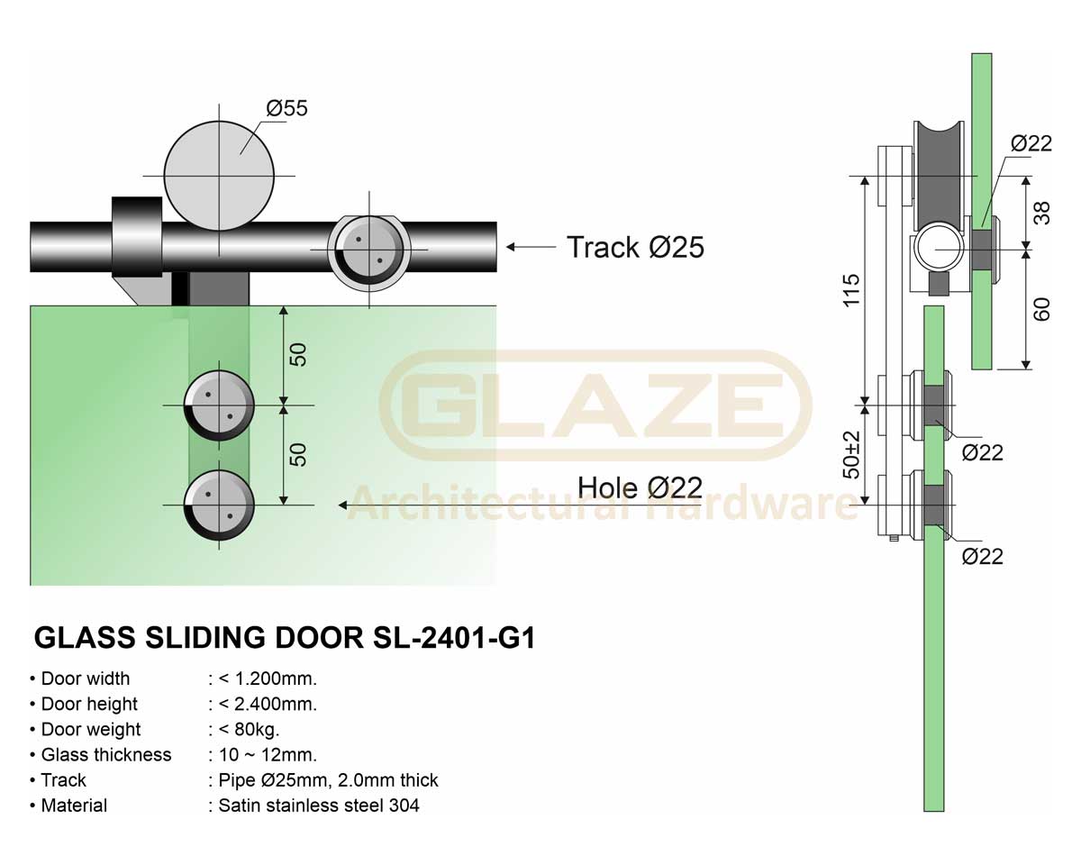 - Trọng lượng cánh cửa < 80kg