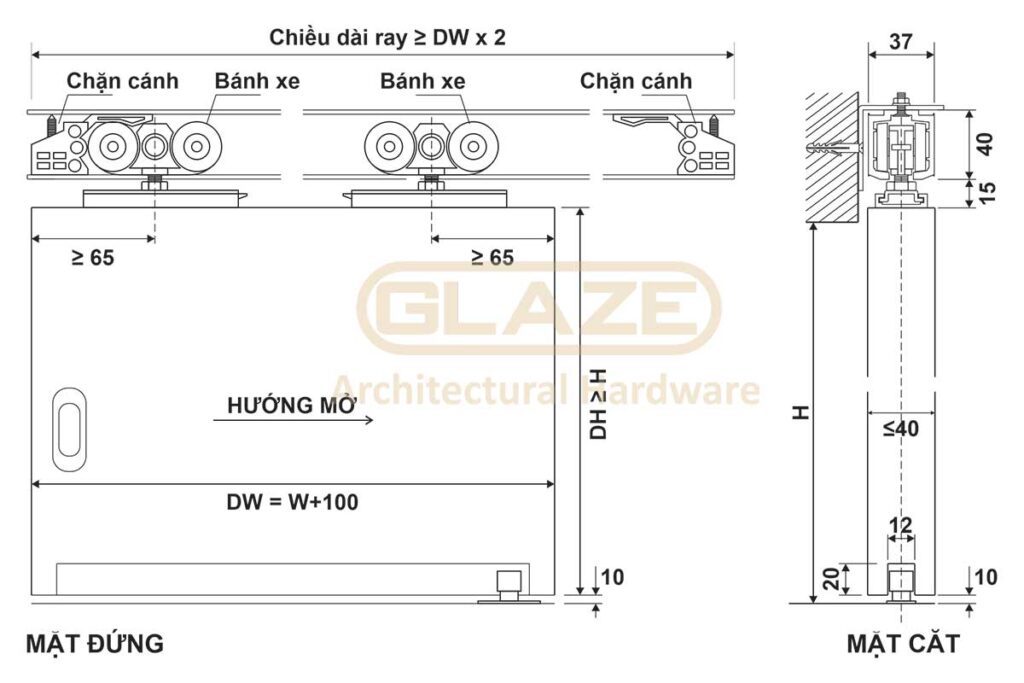 - Hệ thống cửa trượt treo mở/đóng bằng tay, không cần nguồn điện.