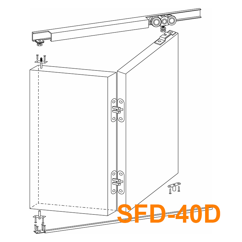Phụ kiện cửa trượt xếp gấp SFD-40D là bộ phụ kiện chuyên dụng dành cho hệ cửa trượt treo 2 cánh kiểu xếp gấp có khung. Thiết kế hiện đại, hoạt động trơn tru, dễ lắp đặt, thích hợp sử dụng trong nhà ở, văn phòng, showroom và nhiều không gian khác.